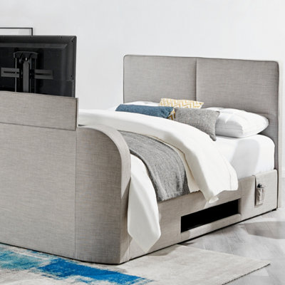 Monaco Light Grey Electric Media TV Bed Happy Beds