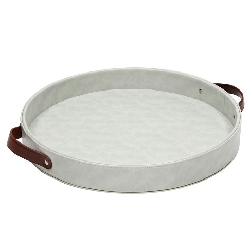 Juvale Leather Round Decorative Serving Tray With Handles For