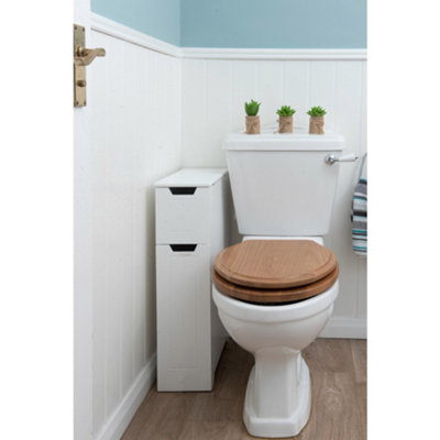 SENNEN Super Slim Bathroom Storage Cabinet Small White Wooden Organiser