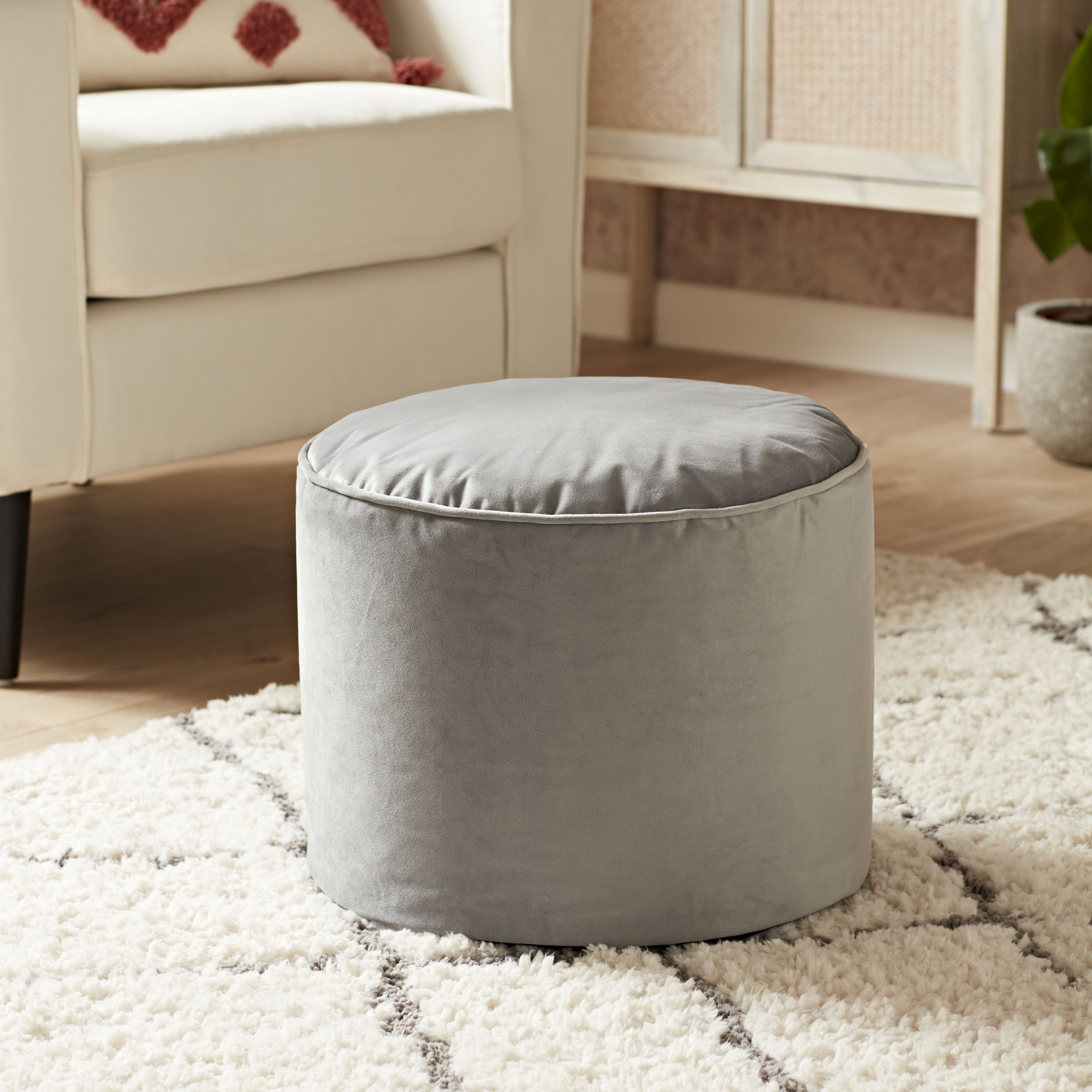 Round grey hot sale pouffe