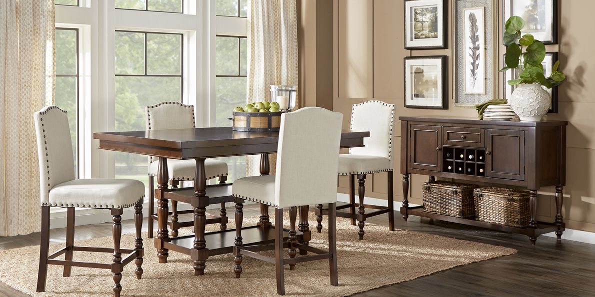 Stanton counter hot sale height table, Stanton Cherry 5 Pc Counter Height Dining Room with Ivory Stools hot sale