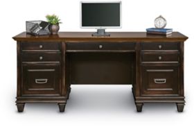 Martin Furniture Fulton Executive Wood Credenza Office Desk Writing Table Brown