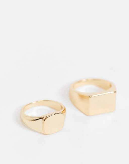 ASOS DESIGN pack of 2 rings in signet design in gold tone