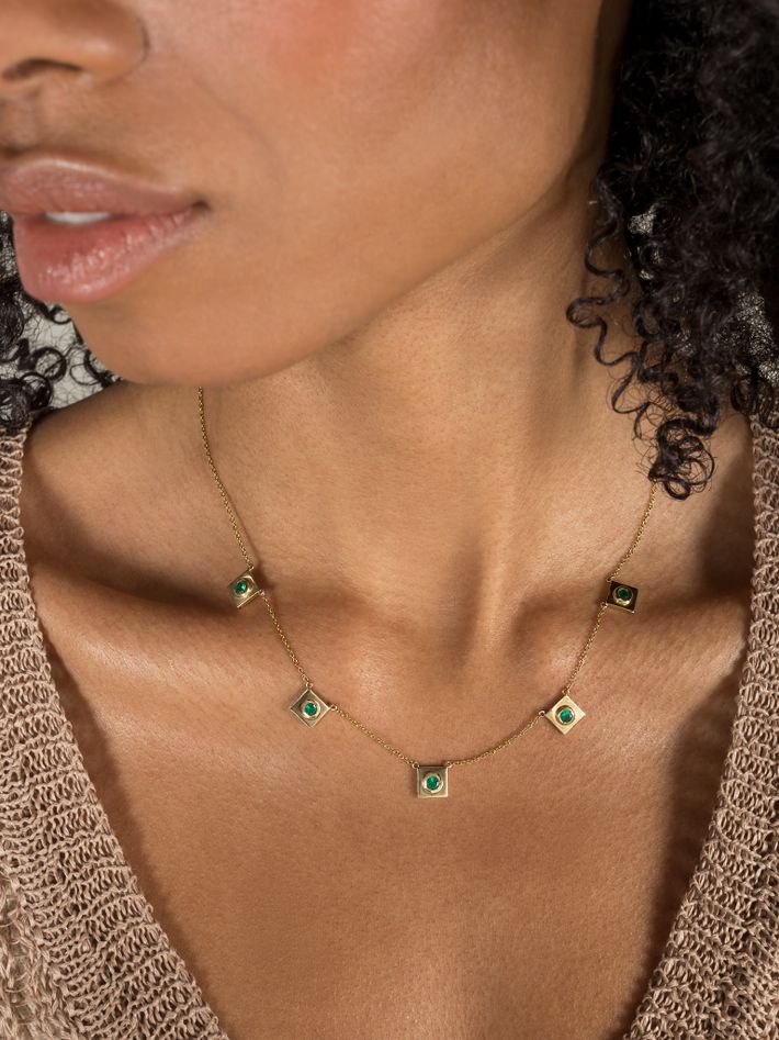 Squared circle emerald station necklace by Corvo Finematter