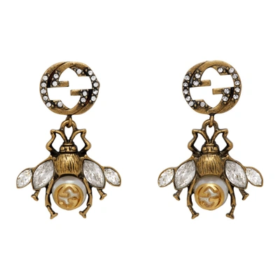 Gucci Gold Interlocking G Bee Earrings In Crystal ModeSens
