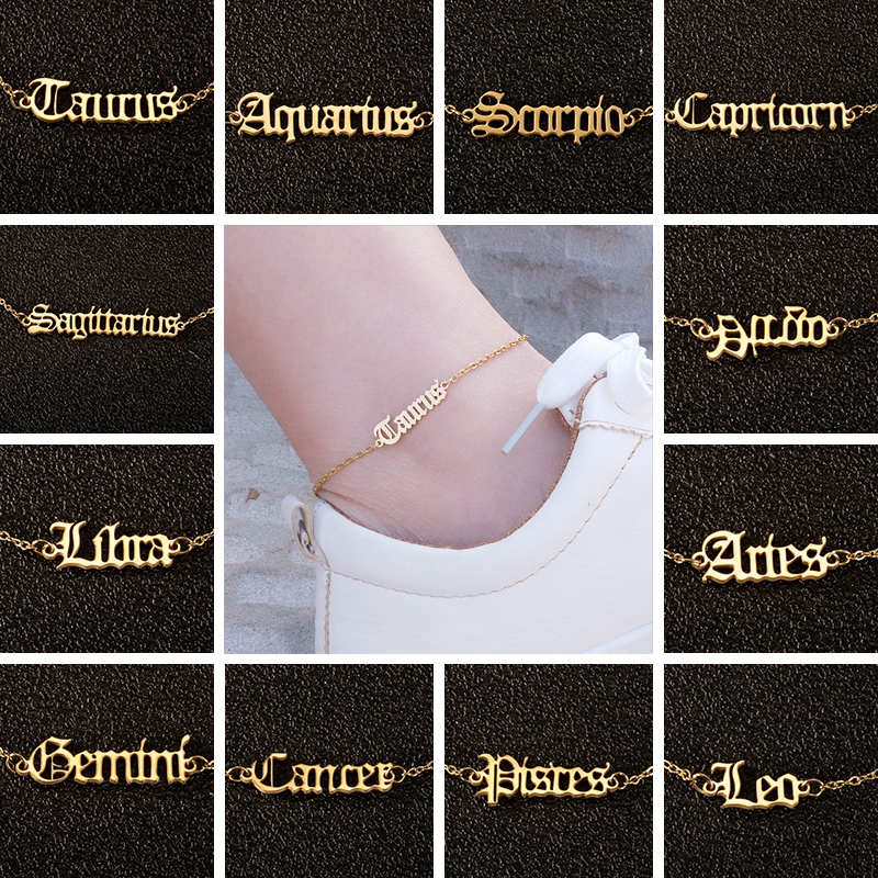 Zodiac Sign Letter Ankle Bracelet Women Boho Jewelry Horoscope Old