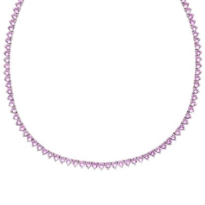 Lab Pink Sapphire Tennis Necklace in Sterling Silver 15 18