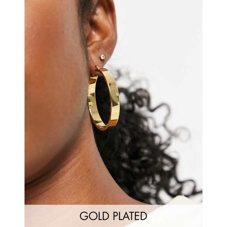 ASOS DESIGN 14k gold plated 35mm hoop earrings in flat design