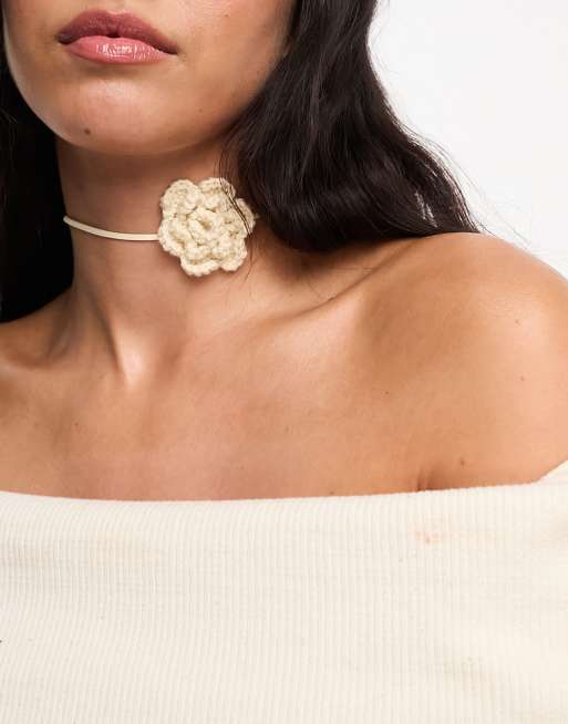 DesignB London knitted rose flower choker in cream ASOS