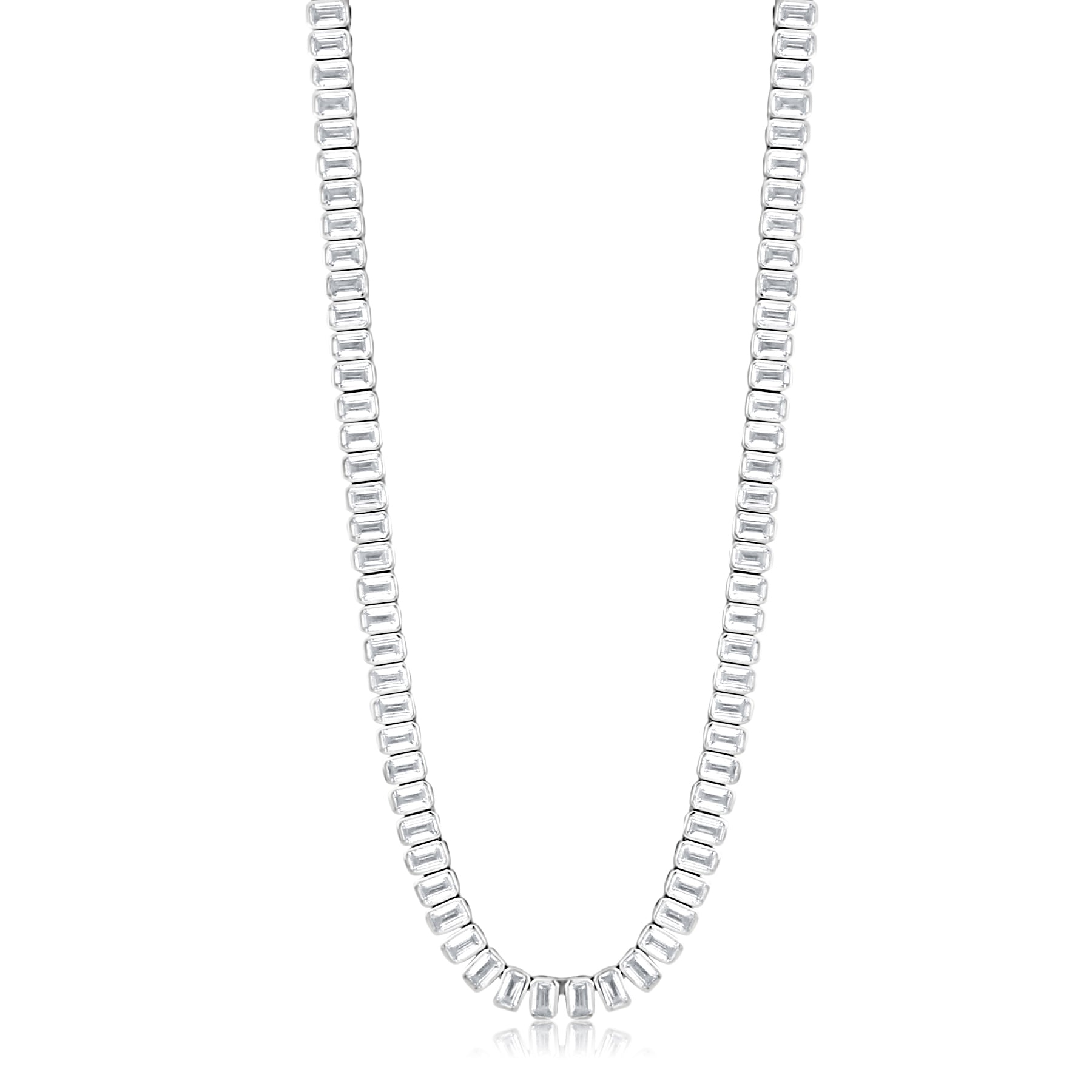 Emerald Cut Bezel Set Statement Tennis Necklace Silver SHYMI