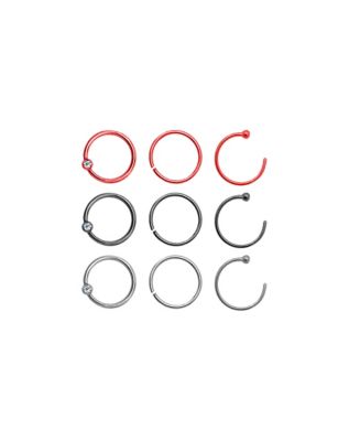 Multi Pack CZ Red and Black Hoop Nose Rings 9 Pack 20 Gauge