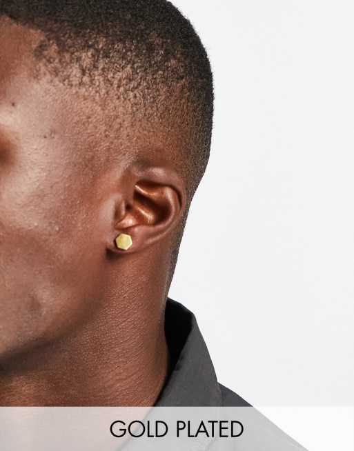 Icon Brand stainless steel hexagonal plug earrings plated in 14k