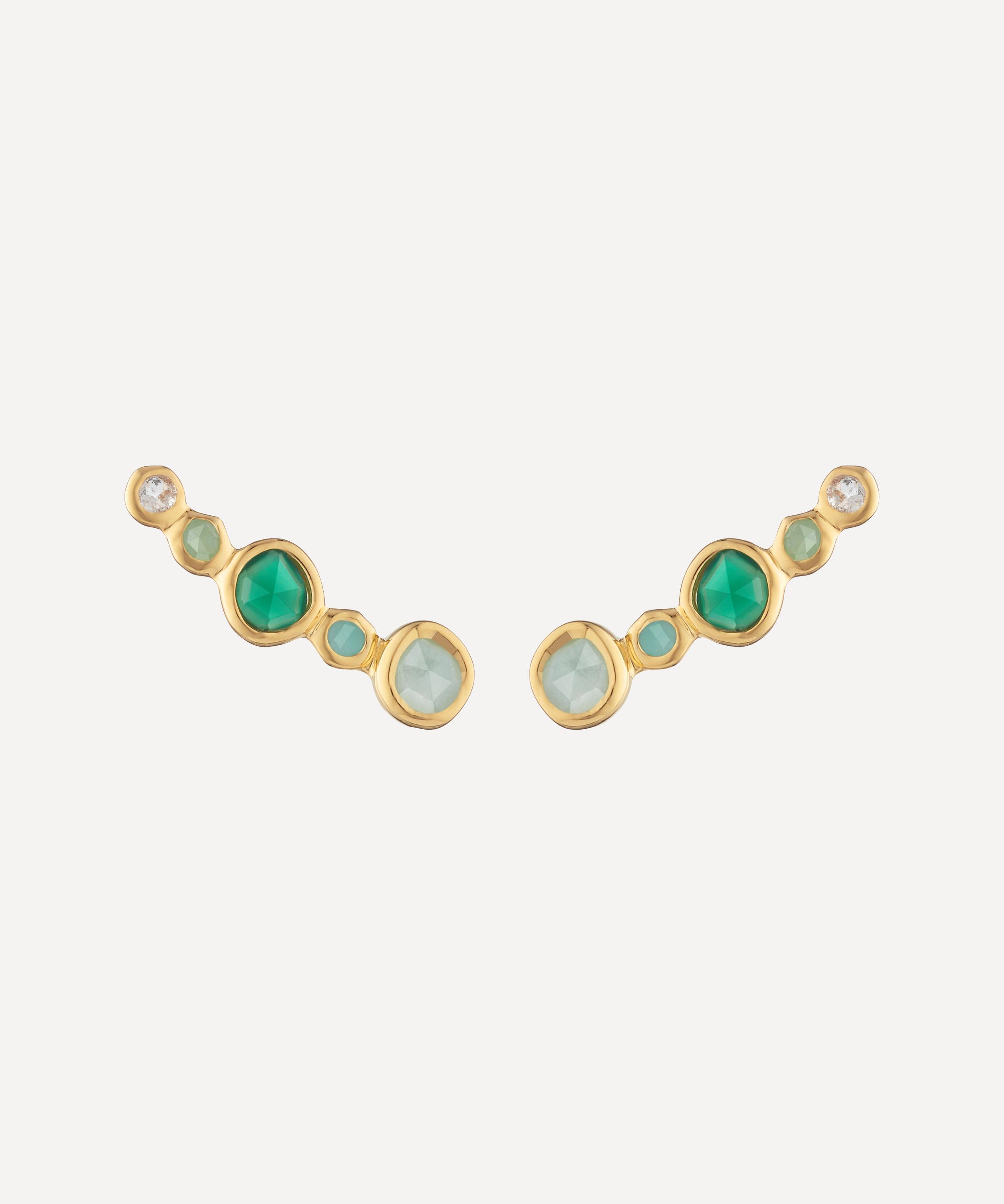 Monica Vinader Siren Climber Earrings 18ct Gold Vermeil Green