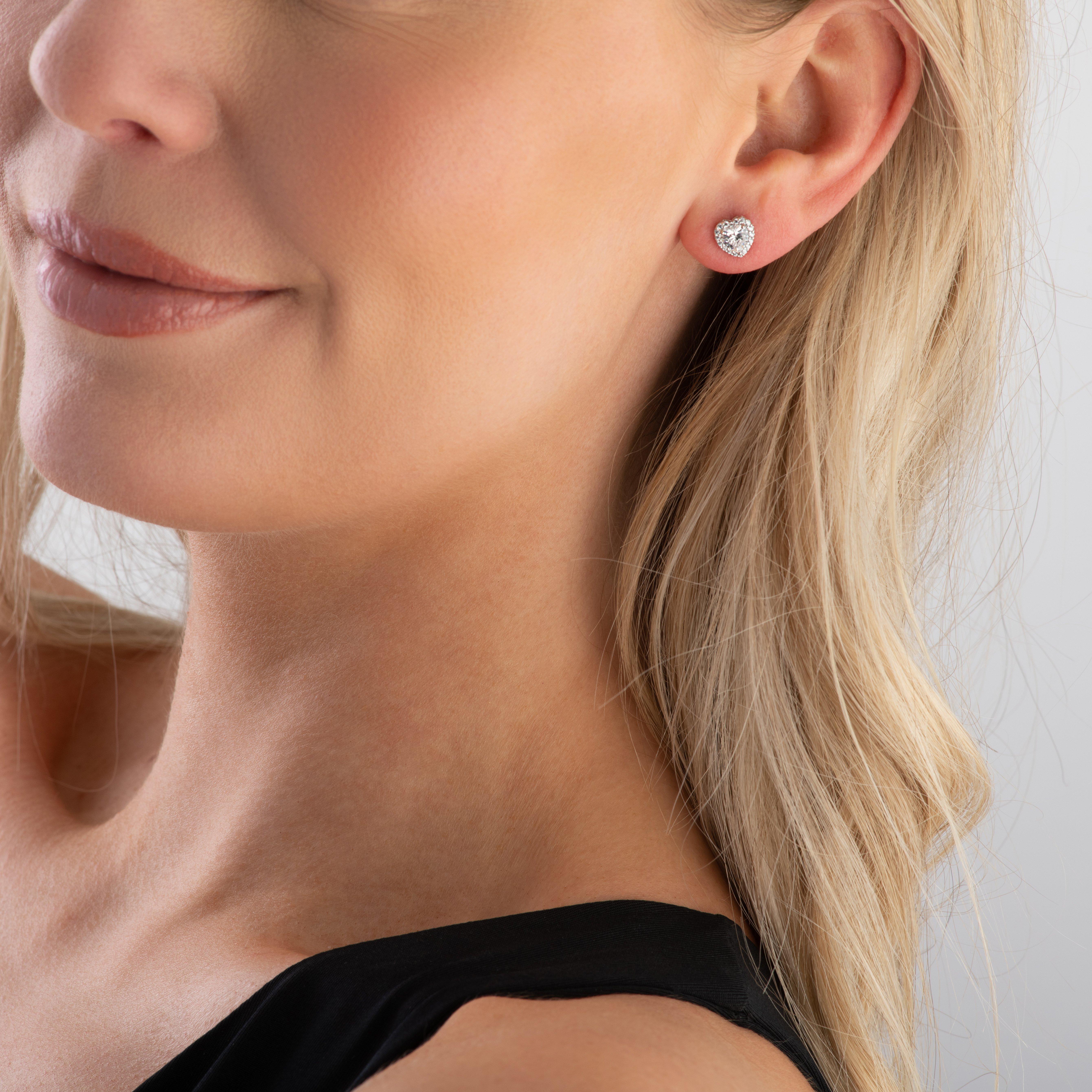 Michael Kors Premium Silver Heart Shaped Cubic Zirconia Halo Stud