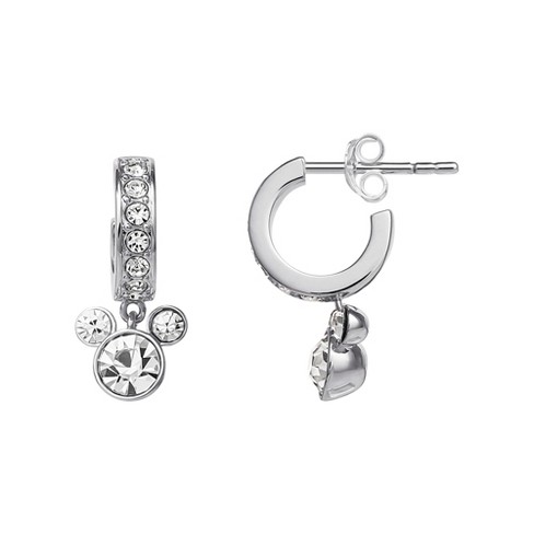 Disney Mickey Mouse Sterling Silver Hoop Dangle Crystal Earrings