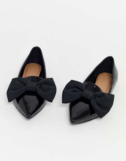 ASOS DESIGN Lake bow pointed ballet flats in black ASOS
