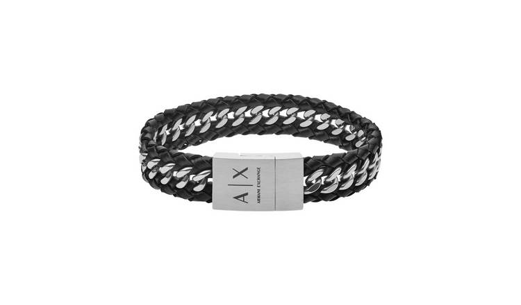Buy Armani Exchange Leather and Stainless Steel Bracelet Mens
