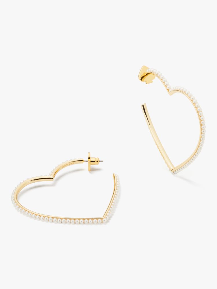 Kate spade hot sale pearl hoop earrings, Shining Spade Pearl Heart Hoops Kate Spade New York hot sale