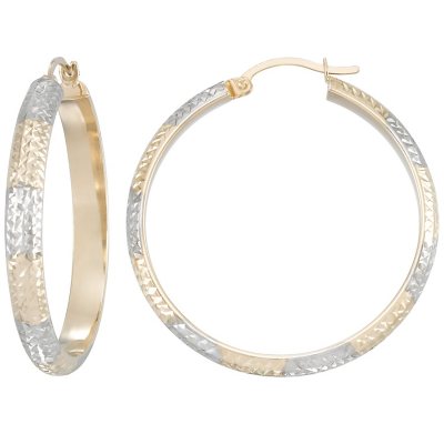 Gold hoop hot sale earrings sam's club, 14K Yellow Gold Crystal Cut and High Polish Round Hoop Earrings hot sale