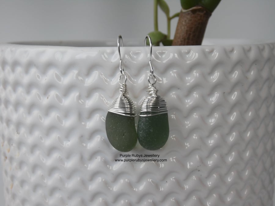Cornish sea hot sale glass earrings, Deep Green Cornish Sea Glass Earrings Sterling Folksy hot sale