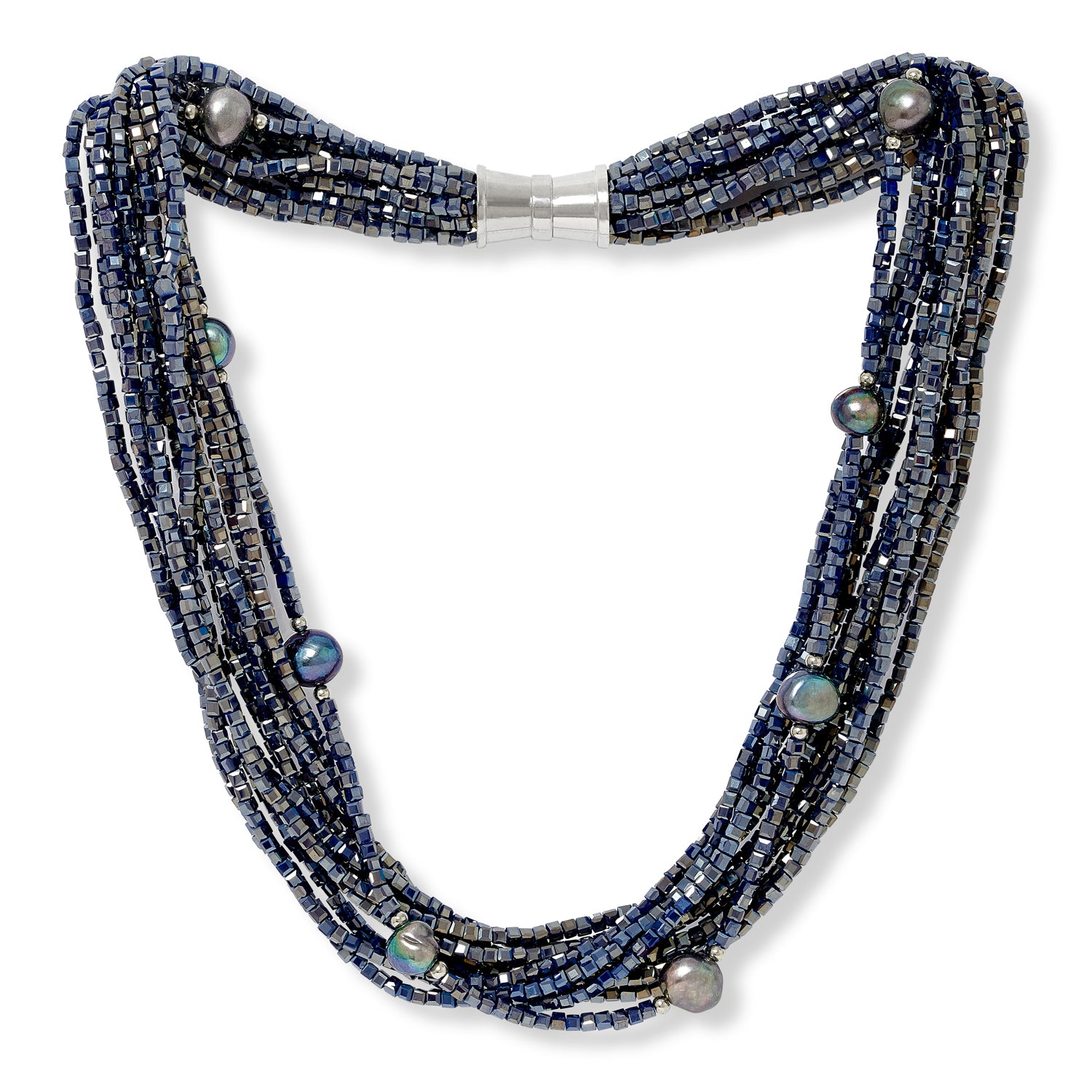 Clara Multi Strand Dark Blue Crystal Necklace With Cultured