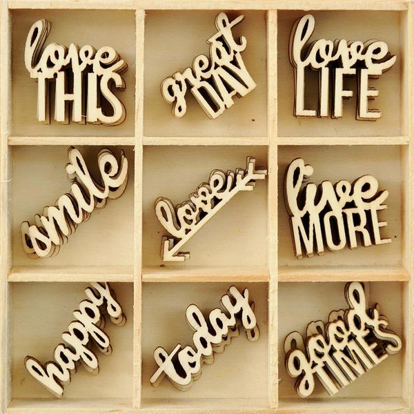 Wooden words hot sale for crafts, Kaisercraft Themed Mini Wooden Flourishes Little Words 45 Pkg hot sale
