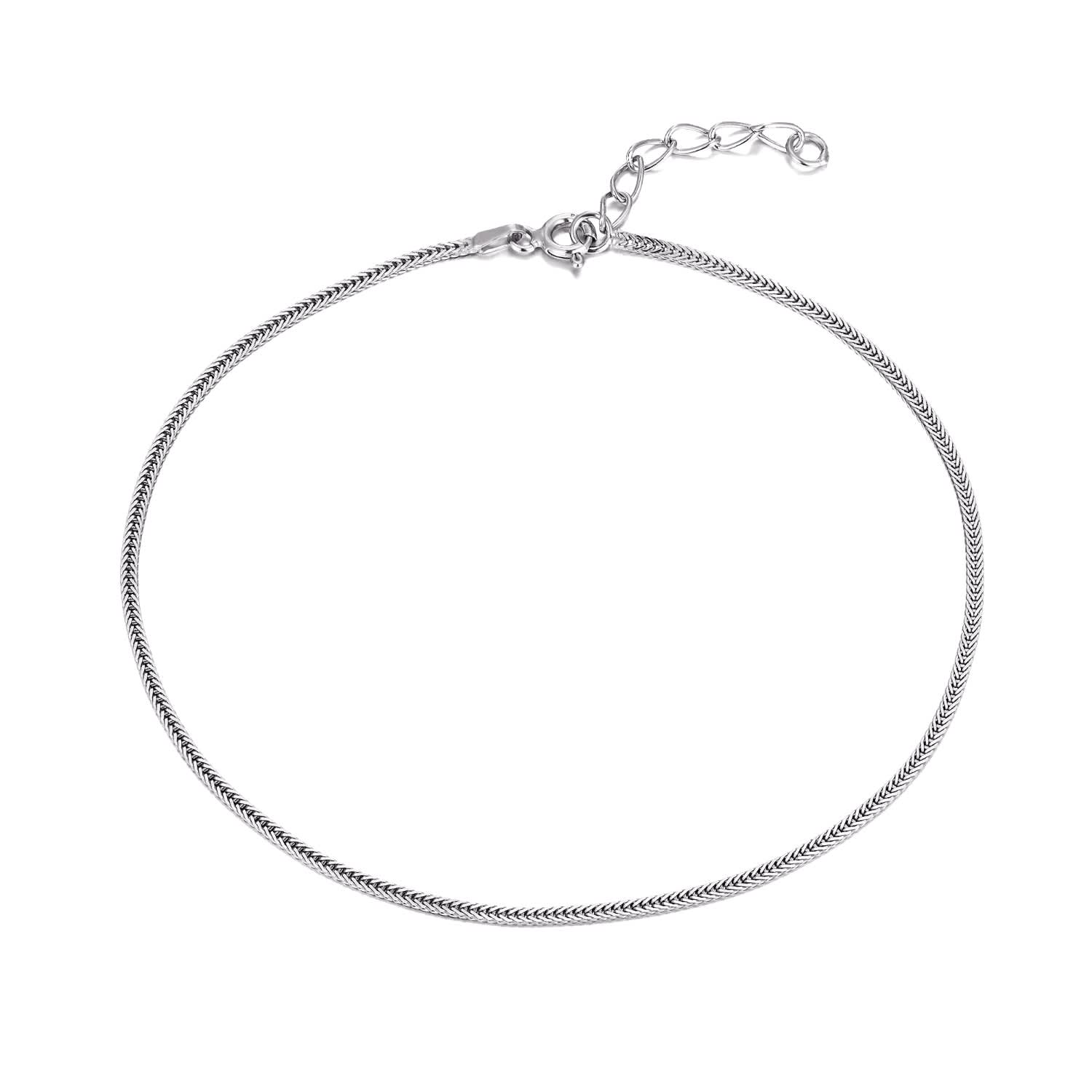 925 Sterling Silver Magic Herringbone Anklet Flat Snake Chain