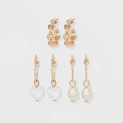 Heart And Shell Charm Hoop Earring Set 3pc Wild Fable Gold Target