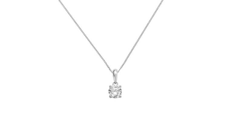 Buy Revere 9ct White Gold 4 Claw Pendant Necklace Argos