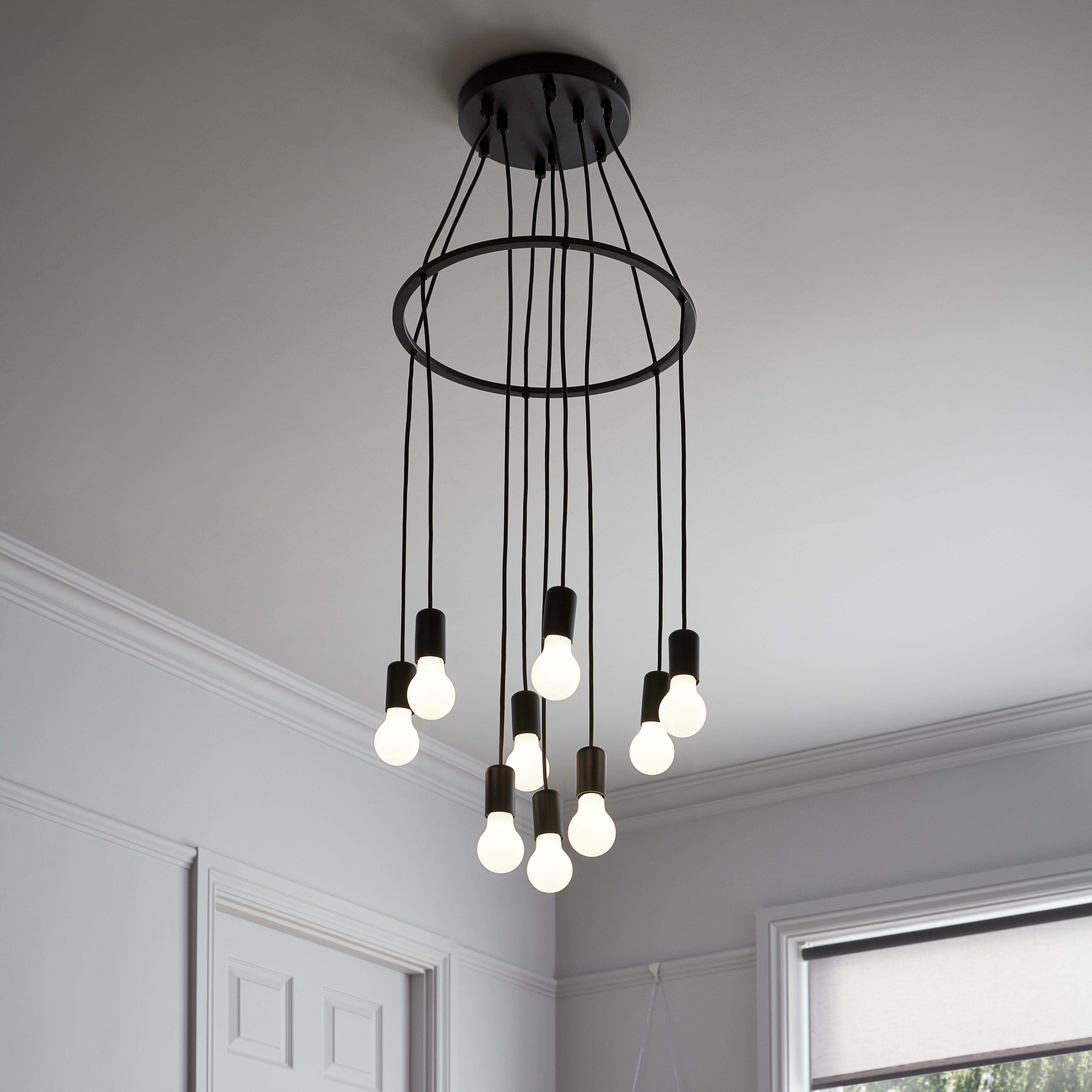 Lognes Matt Black 9 Lamp Pendant ceiling light Dia 400mm DIY