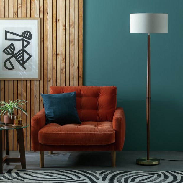 Buy Habitat Wooden and Brass Stick Floor Lamp Off White Floor lamps Habitat