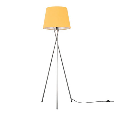 ValueLights Modern Polished Chrome Metal Tripod Floor Lamp With Mustard Shade