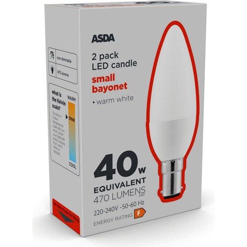 ASDA LED Candle Small Bayonet Lightbulb 2 x 40w Compare