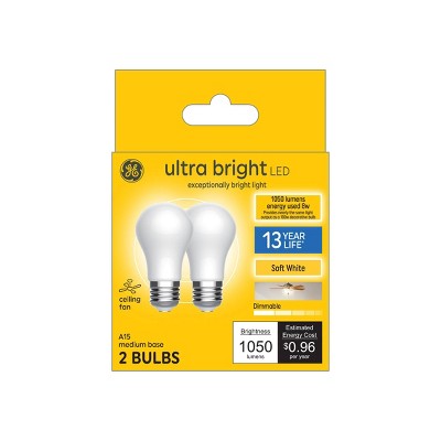 Ge 2pk 8 Watts Soft White Medium Ultra Bright Ceiling Fan Light