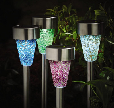 4 x Solar LED Stake Lights Multi Coloured Mosaic Outdoor Garden