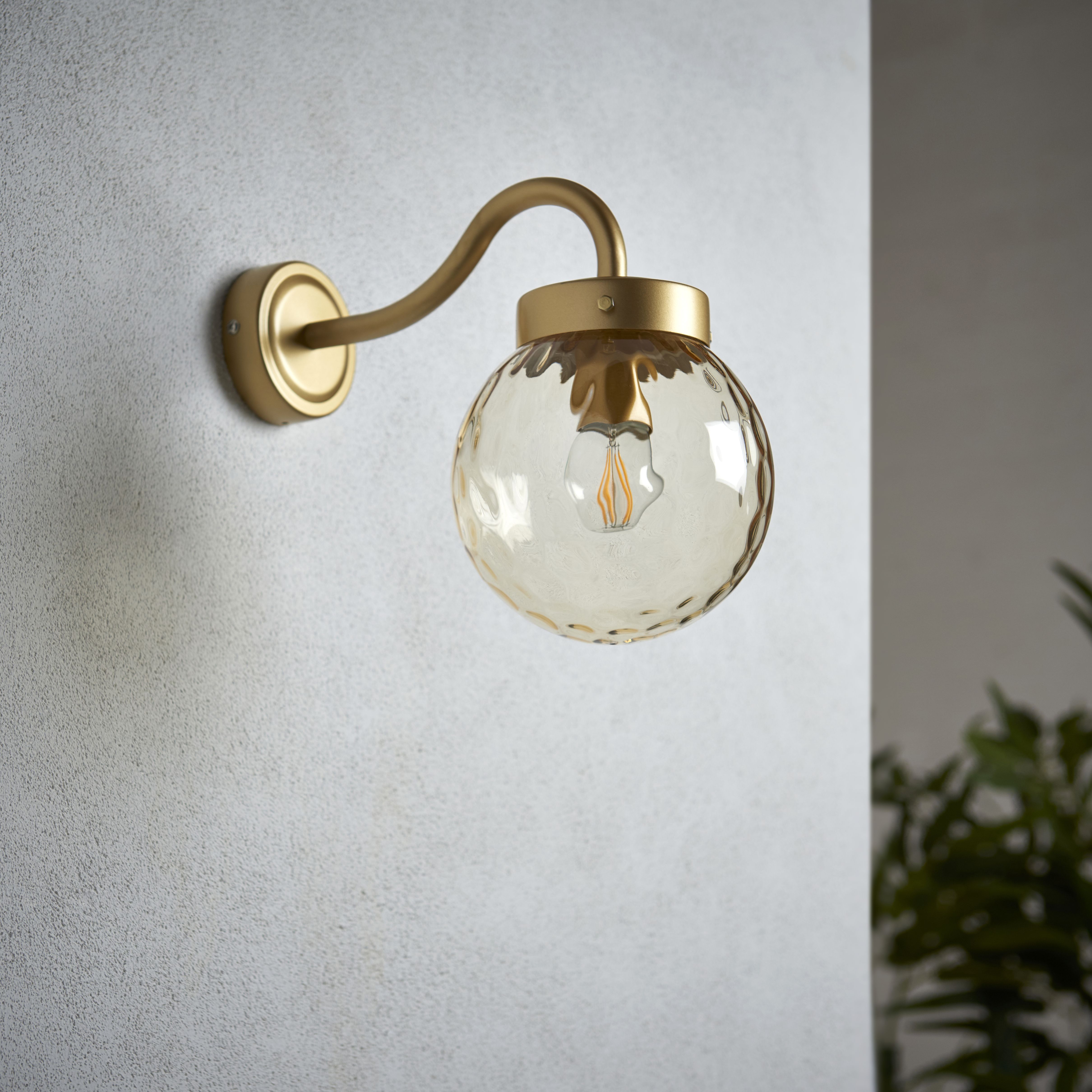 Verity Fixed Satin Gold Mains powered wired Outdoor Dimmable Wall light with Champagne shade