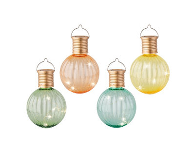 Hanging Solar Lights Set Of 4 Pastel Coloured Garden Solar Bulbs
