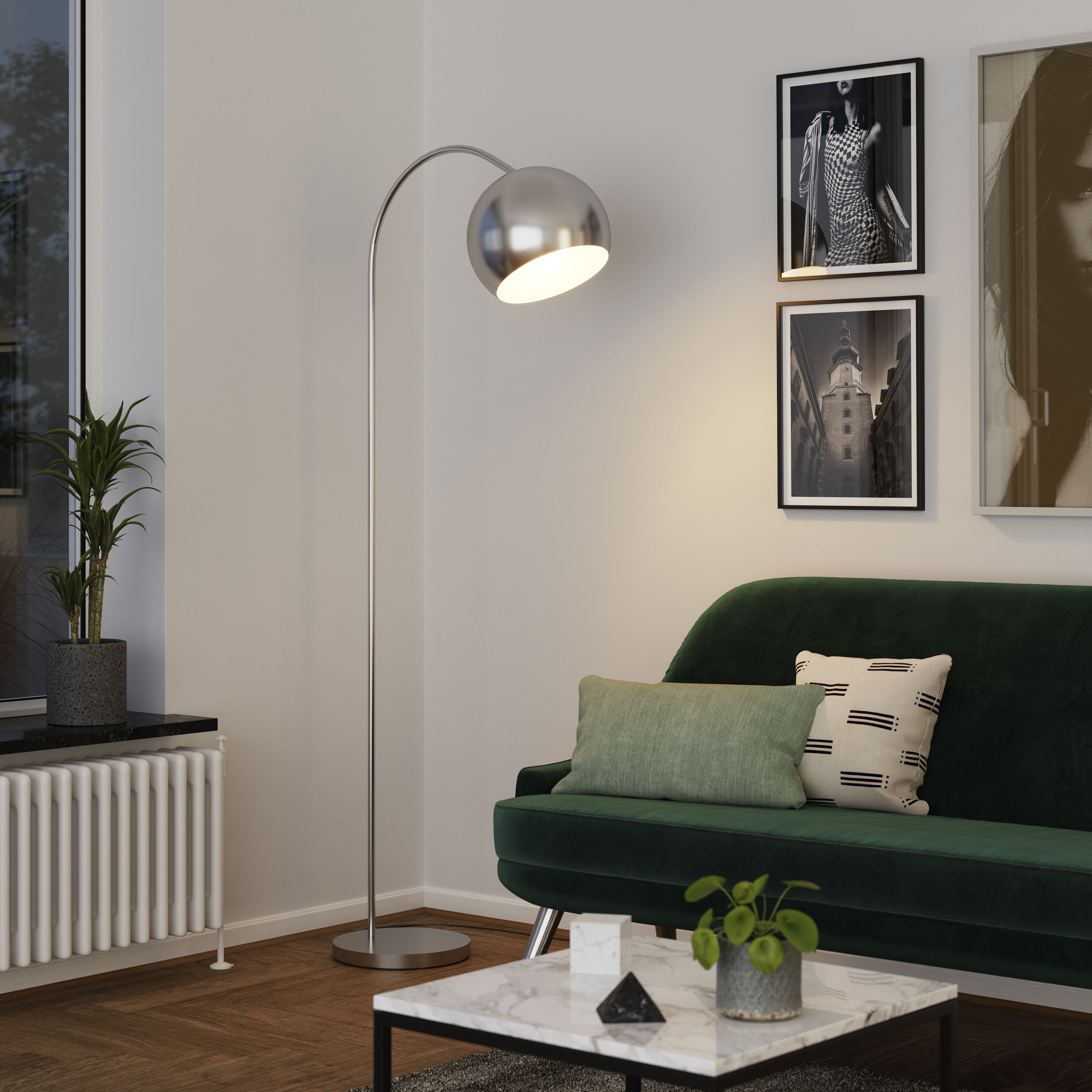 Argos curva hot sale floor lamp, Contemporary Polished Chrome Floor Lamp With Glass Dome Shade hot sale