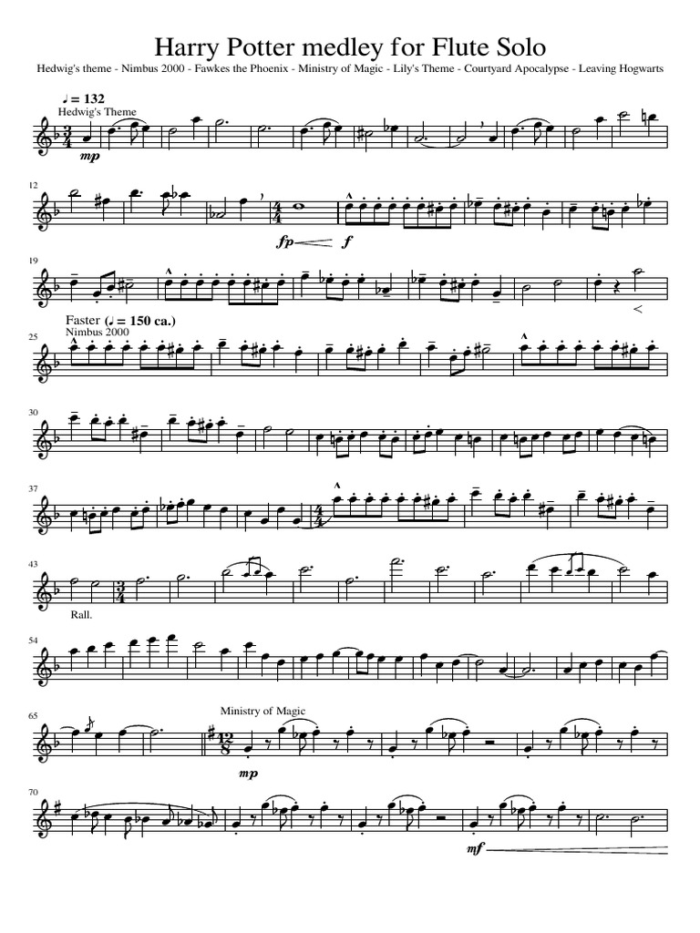 Harry Potter Medley Flute Sheet Music Flute sheet music Sheet