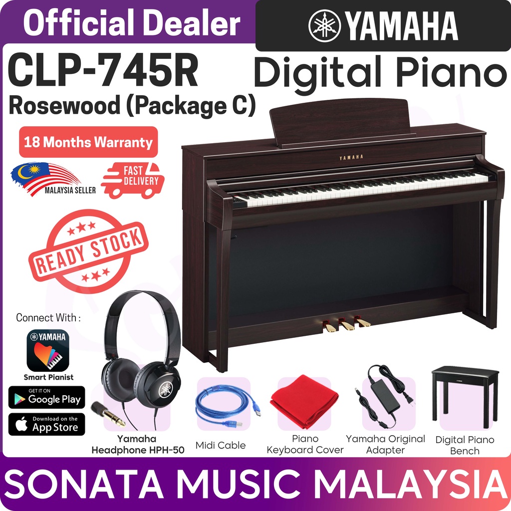 Yamaha CLP745R Rosewood Branded Accessories Package Bonners Music