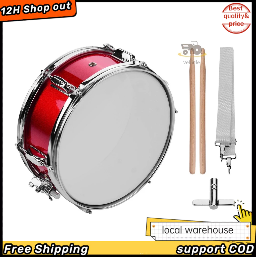 12 inch Snare Drum Head with Drumsticks Shoulder Strap and Drum