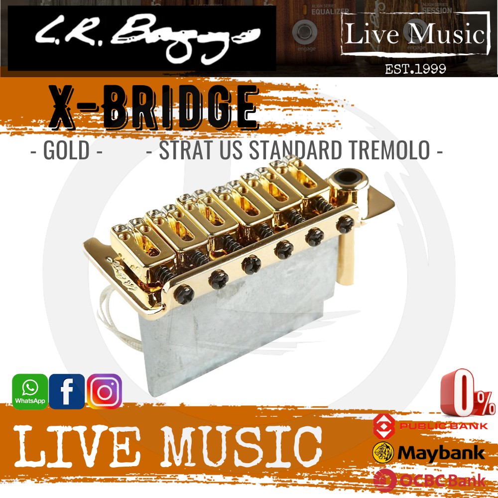 LR Baggs X Bridge Strat Piezo Bridge Pickup US Standard 2 Post Tremolo Bridge Gold