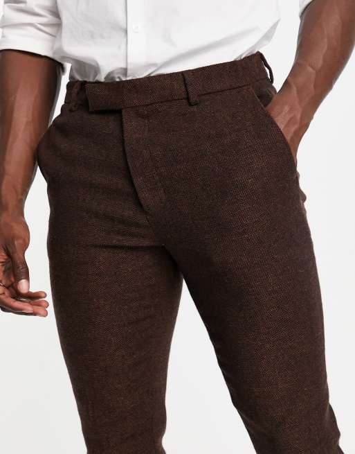 ASOS DESIGN super skinny wool mix suit pants in dark brown tweed