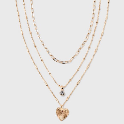 Gold 3 Row With Textured Heart Necklace A New Day Gold