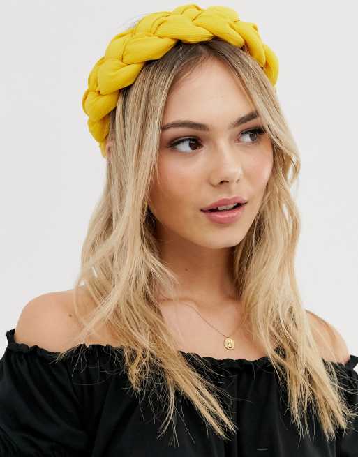 ASOS DESIGN headband in padded braid design in mustard yellow