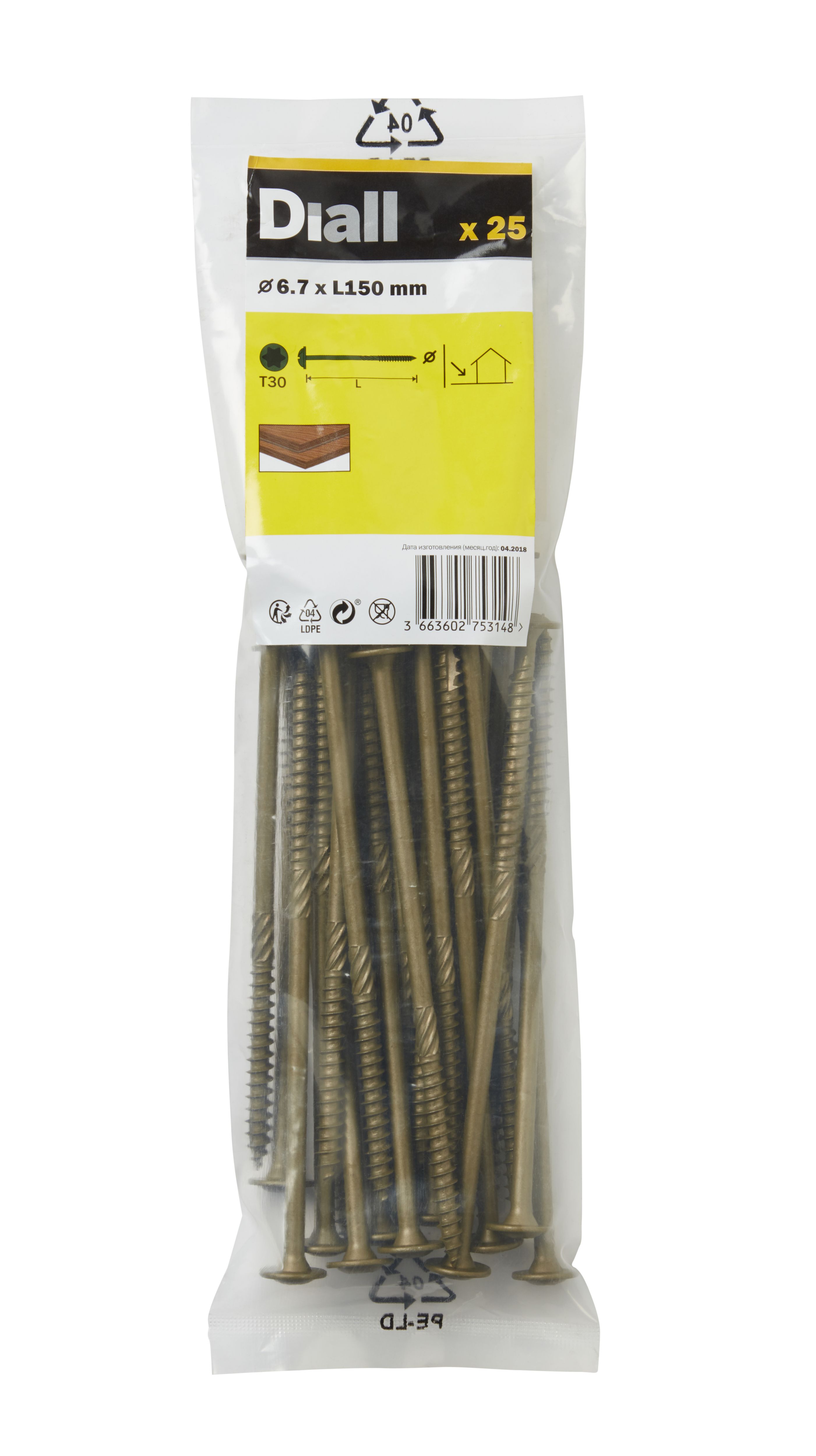Diall Wafer Carbon steel Screw Dia 6.7mm L 150mm Pack of 25