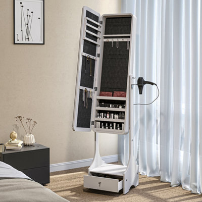 Wagner free standing jewelry hot sale armoire with mirror, White Standing Jewelry Armoire with LED Lighted Mirror DIY at B Q hot sale