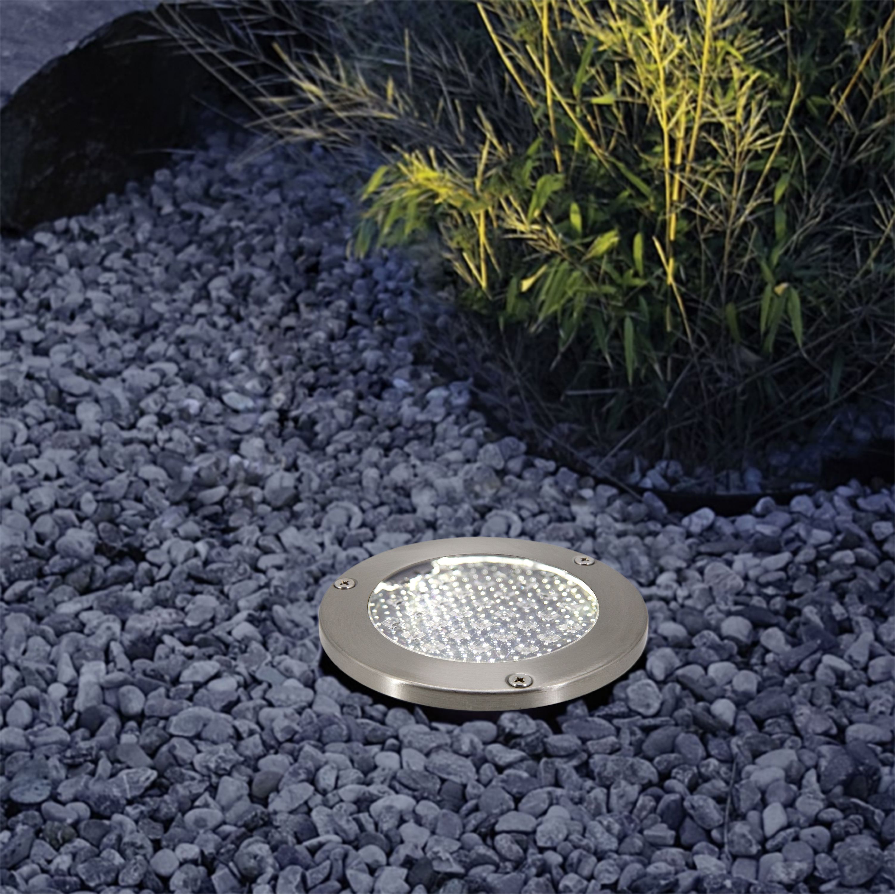 GoodHome Glend Stainless steel effect Solar powered Cool white LED
