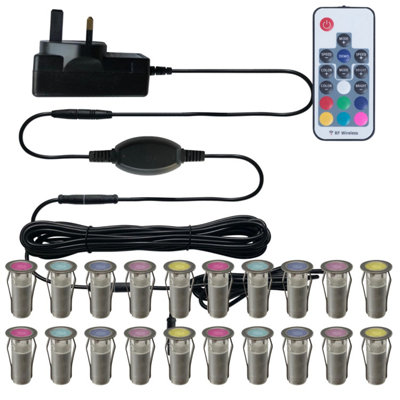 Kitchen plinth hot sale lights b&q, First Choice Lighting Set of 20 15mm Stainless Steel IP67 RGB hot sale