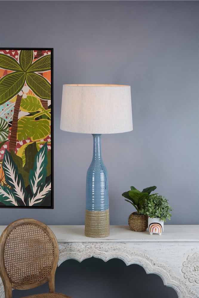 Potters Large Blue Brown Tall Thin Glazed Ceramic Table Lamp
